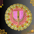 Celebrate devotion with this vibrant multicolor poshak crafted in rich shades of orange, green, yellow, and pink, detailed with mirror embroidery and golden lacework. Its intricate thread design brings a festive glow to your beloved Laddu Gopal Ji, making every darshan extra special.