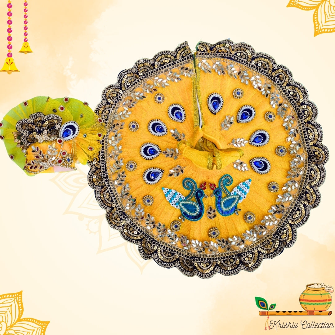 Sunshine Yellow Laddu Gopal Poshak with Peacock Motif & Pagdi