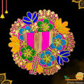 Celebrate devotion in color with this Vibrant Pink Poshak, intricately designed with blue, green, yellow, and orange floral embroidery, accentuated by golden lace and mirror work. The joyful palette brings life and positivity to your temple décor — perfect for festive darshan and daily pooja.