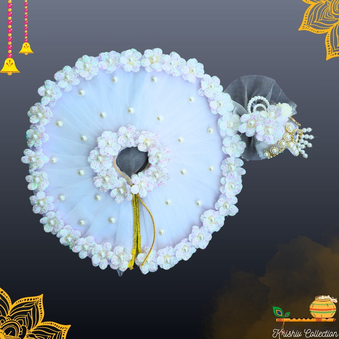 White Floral Pearl Laddu Gopal Ji Poshak with Matching Pagdi